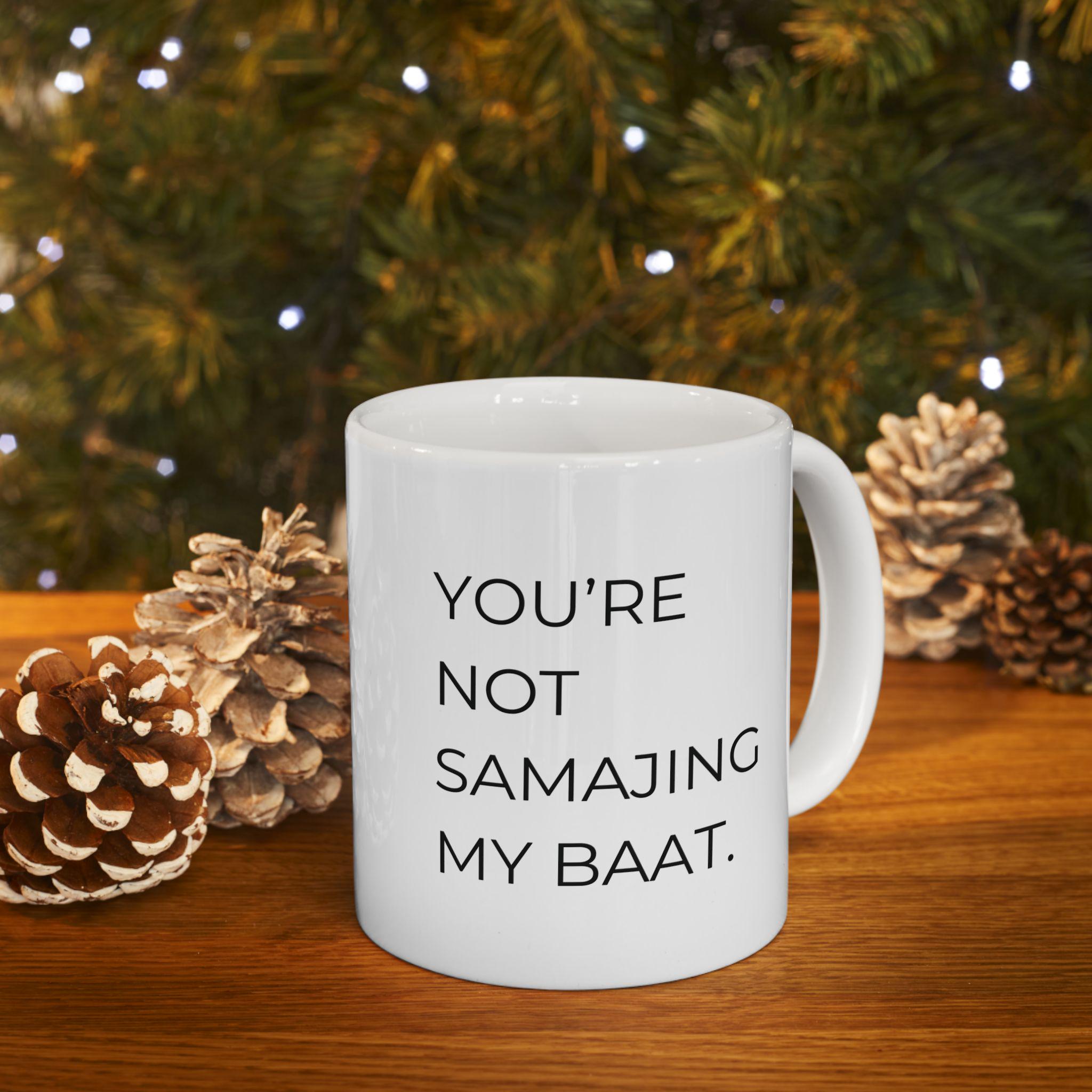You're Not Samjing My Baat: A Desi Humor Chai Mug. Tired of interruptions? This mug says it all: "You're Not Samjing My Baat." Perfect for chai, coffee, or hot chocolate. Made from high-quality ceramic. Order now!