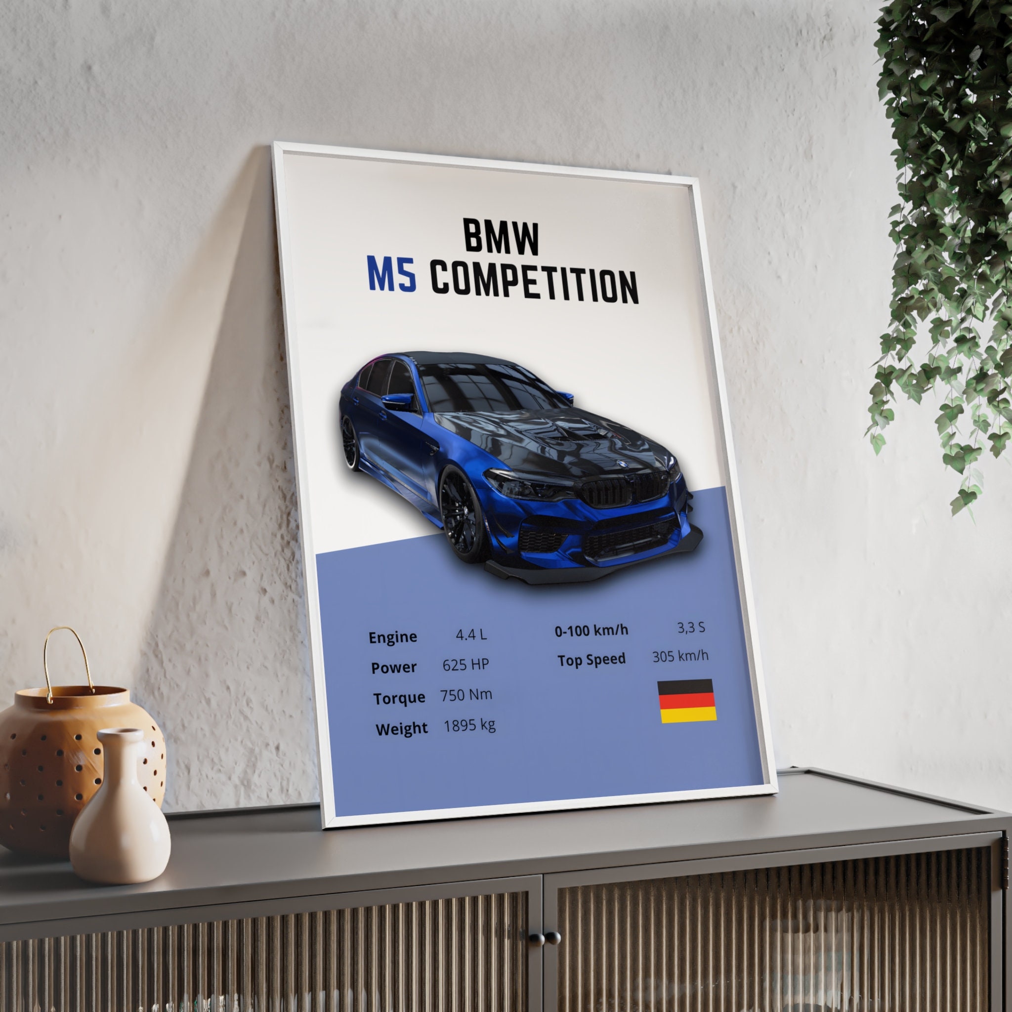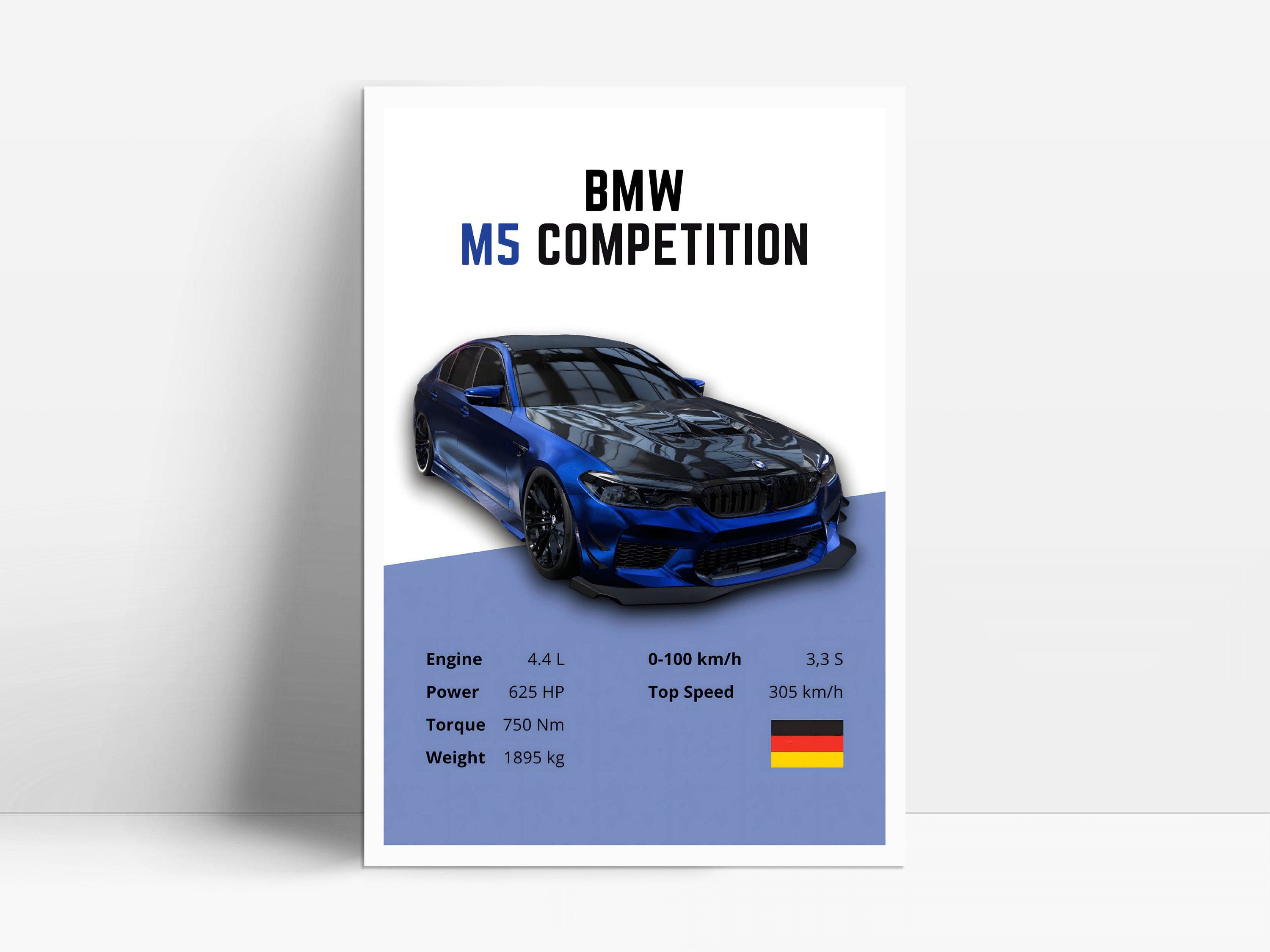 Step into the world of class and power with our exclusive BMW M5 Competition poster. Infuse your space with a touch of sporty elegance and let your passion for cars shine with this masterpiece of German technology and design.